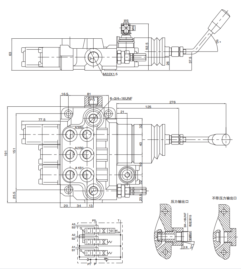HM65多路換向閥是我單位自主設(shè)計(jì)開發(fā)的一種中高壓整體式多路換向閥。可按客戶要求在閥上設(shè)溢流閥、單向閥、補(bǔ)油閥等。溢流閥可調(diào)節(jié)系統(tǒng)壓力,單向閥防止油液倒流,換向閥滑閥機(jī)能有A、0、Y、P等,可任意組合。換向手柄有兩種安裝形式,便于不同方向的操作。該閥采用并聯(lián)油路,設(shè)計(jì)有壓力輸出口與其它液壓元件相接提供動(dòng)力源。經(jīng)過特殊設(shè)計(jì)的密封方式,使閥的密封性能好。該閥廣泛用子叉車、環(huán)衛(wèi)車輛、小型裝載機(jī)等工程機(jī)械的液壓系統(tǒng)。