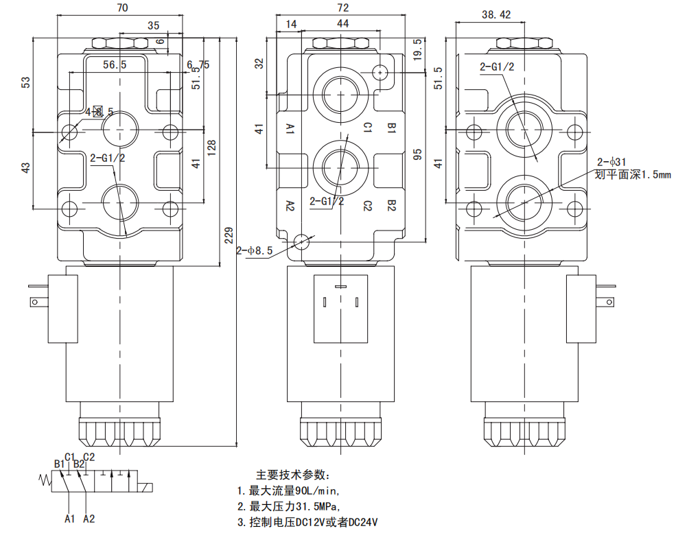 4.DVS90電磁切換閥是基礎的多路閥和2個液壓執行元件之間的鏈接點。